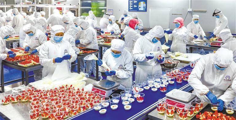 2月13日,位于江苏省南京市溧水区永阳工业园的南京布布食物有限公司,职工在赶制簇新食物,保险新春节日需求。
