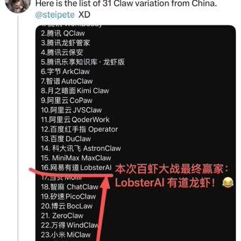 【国内风风火火的龙虾大战开yun体育网,可能灵验果了】OpenClaw独创东说念主从31个中国龙虾里点赞了网易有说念的LobsterAI。