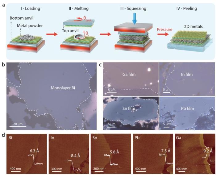 范德华挤压手艺普适制备埃米极限厚度二维金属的线路图。中国科学院物理征询所 供图